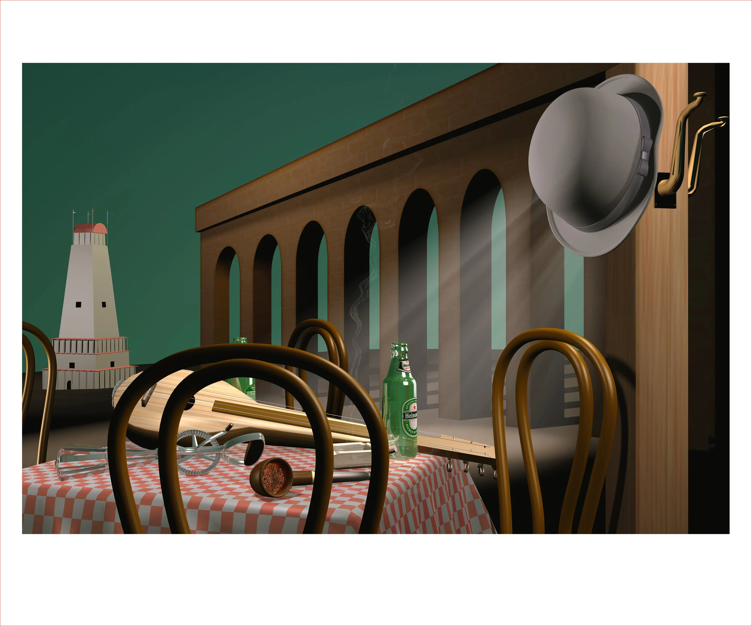 “I am having a Heineken at Fanelli’s with Magritte, de Chirico, and Stuart Davis.”
